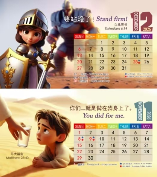 编号:01SCA26~ 2026经文迷你台历 (中英对照)